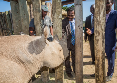 The departure of six rhinoceros happened in the presence of H.E.M SAGOUR YOUSSOUF MAHAMAT ITNO, Ambassador Extraordinary & Plenipotentiary of the Republic of Chad to the Republic of South Africa. He was assisted by Colonel KASTO SOULBEL DOURI, Defence Attaché and Mr Oumar TEGUEN IDIBEI BERDE, Executive Secretary.